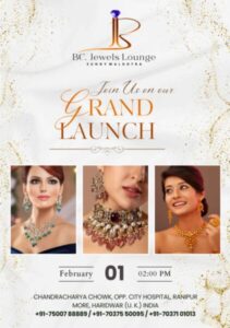 हरिद्वार: बी.सी. ज्वेल्स लॉन्ज (BC Jewels Lounge) आपके लिए एक शानदार आभूषण प्रदर्शनी लेकर आ रहा है। इस ग्रैंड लॉन्च...