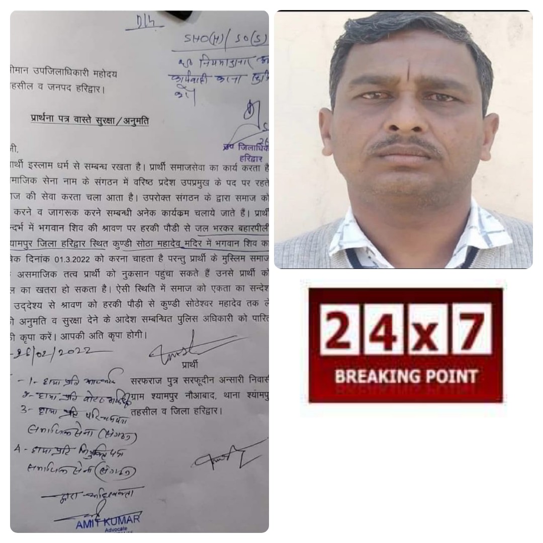 युवक द्वारा एसडीएम हरिद्वार से बाहरपीली गांव के मंदिर में जलाभिषेक करने की अनुमति मांगने के साथ अपनी सुरक्षा की गुहार भी लगाई थी।