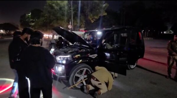 इस दौरान चिन्मय चौक से एक काले रंग की स्कॉर्पियो जिसका नम्बर UK08AP7766 था जो कि पुलिस की लाल नीली बत्ती और हूटर बजाते हुए किर्बी चौक की तरफ आई जिसको रोक कर चेक किया गया।