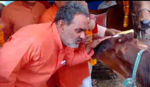 जिसमे भाजपा नेताओं ने गौ पूजन के साथ साथ गाय से बात कर उसका दर्द जाना यही नहीं नेता जी ने गाय से बात कर उनका दर्द जानकर पत्रकारों को भी इसकी जानकारी दी।