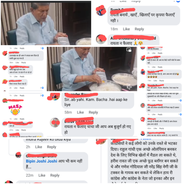 उत्तराखंड के पूर्व मुख्यमंत्री हरीश रावत ने सोशल मीडया पर पहाड़ी ककड़ी का रायता बनाने का वीडियो क्या डाला उनके समर्थकों ने फेसबुक पर उनकी पोस्ट पर ही रायता फैला दिया।
