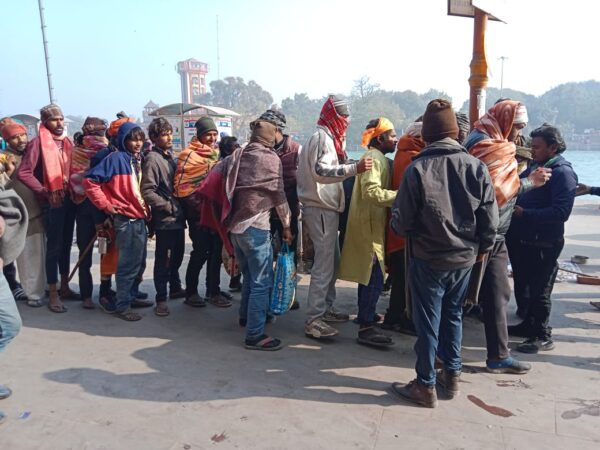 हरिद्वार-गिरवर नाथ जनकल्याण धर्मार्थ ट्रस्ट द्वारा हर की पौड़ी के समीप सुभाष घाट पर सेकड़ो गरीब असहाय लोगो को भोजन एवं चाय वितरण कर उनके लिए अलाव की व्यवस्था की गई