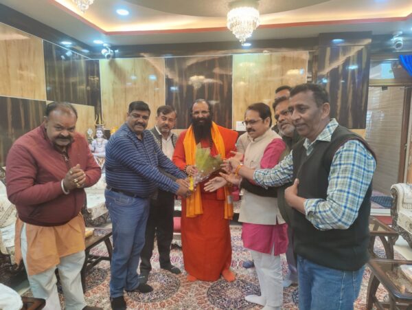 हरिद्वार। आगामी हरिद्वार कुंभ आयोजन 2027 को सफल और सुव्यवस्थित बनाने के लिए अखिल भारतीय अखाड़ा परिषद के अध्यक्ष श्रीमहंत रविंद्रपुरी द्वारा किए जा रहे प्रयासों की सराहना करते हुए बुधवार को प्रांतीय नगर उद्योग व्यापार मंडल और उसके पदाधिकारी उनसे मुलाकात करने पहुंचे।