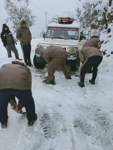 दरअसल गुरुवार को घनघोर अंधेरे व भारी बर्फबारी में भी SDRF टीम निरन्तर पोलिंग पार्टीयों तक पहुंचने के लिये गतिमान थी।