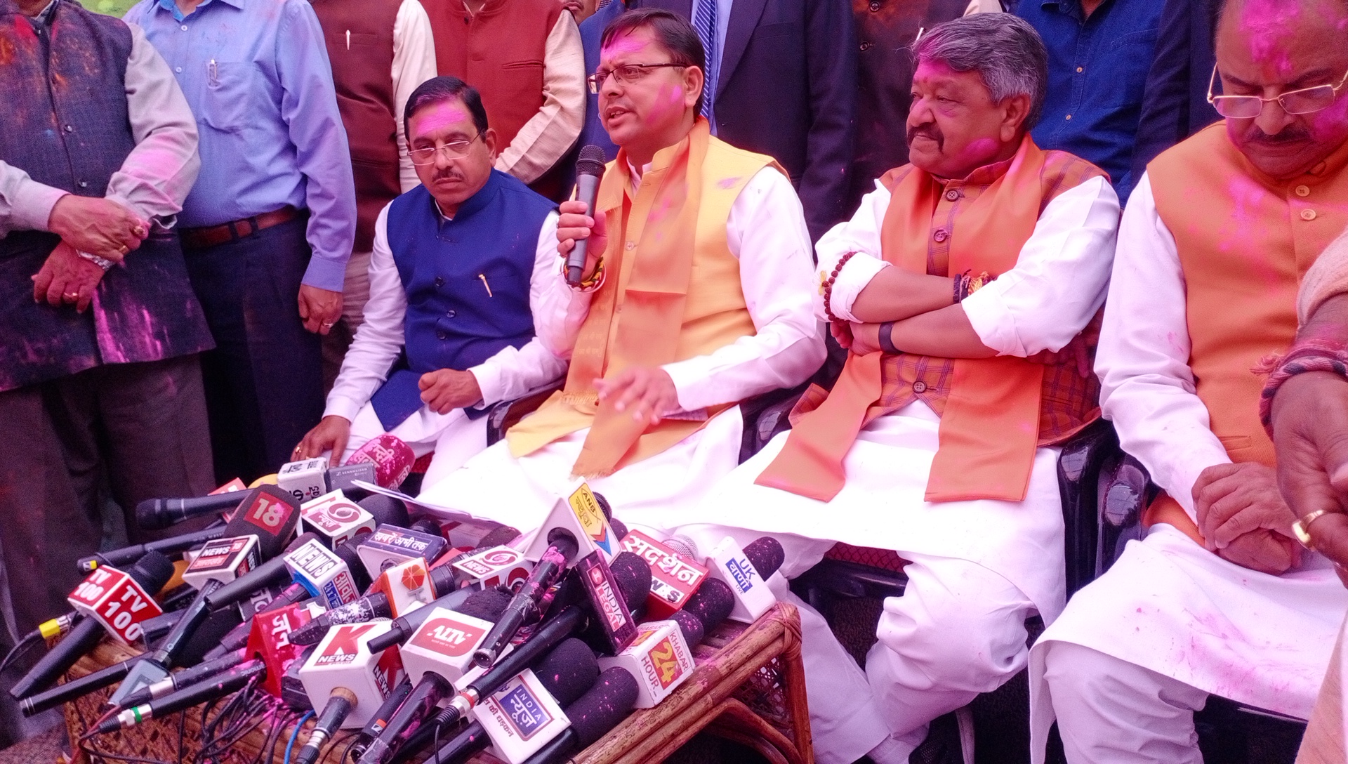 भाजपा मुख्यालय पर सीएम धामी, चुनाव प्रभारी प्रहलाद जोशी, राष्ट्रीय महासचिव कैलाश विजयवर्गीय ओर केंद्रीय मंत्री अजय भट्ट ने भी होली खेली।