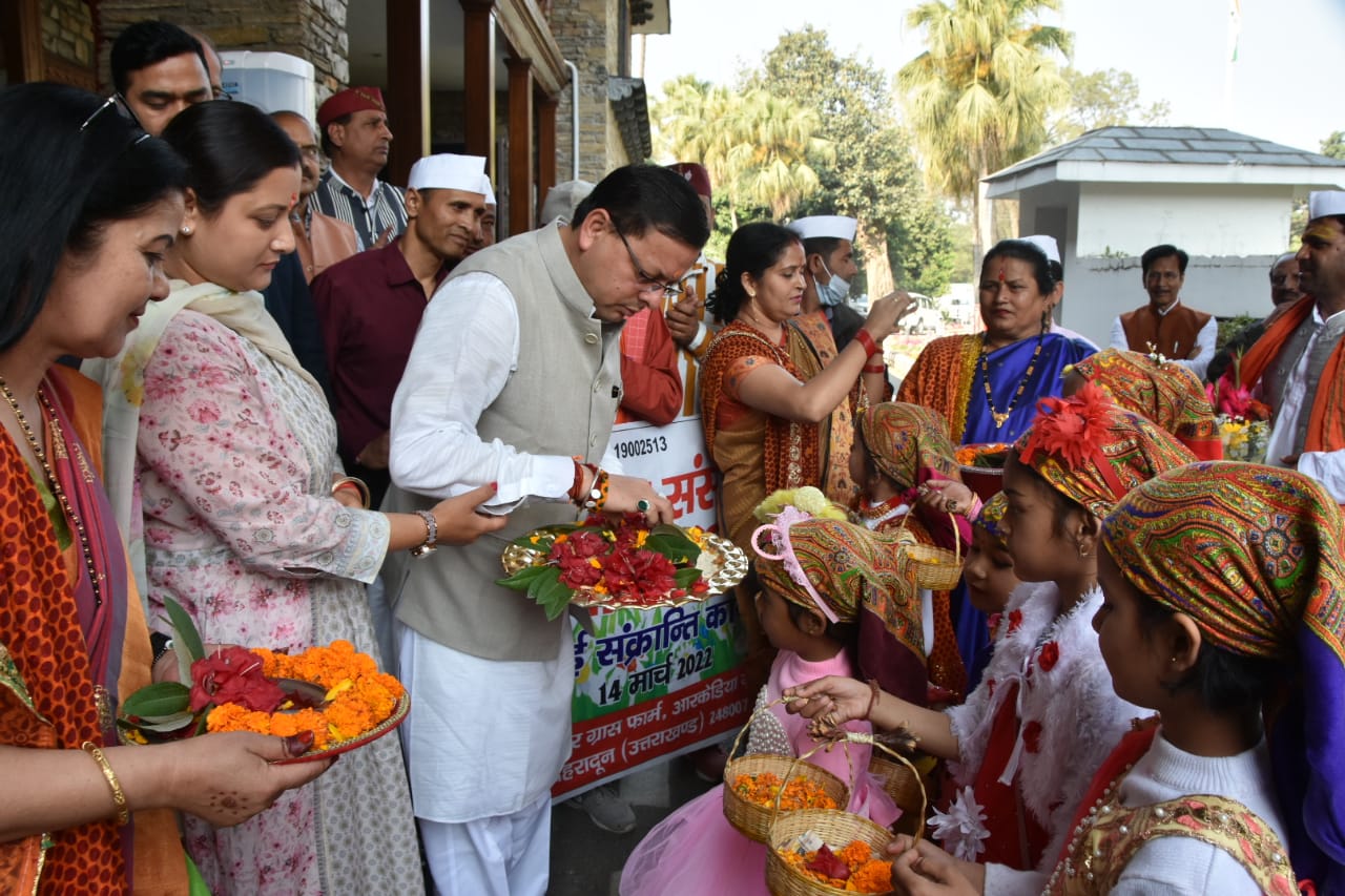 कार्यवाहक मुख्यमंत्री पुष्कर सिंह धामी ने सोमवार को मुख्यमंत्री आवास में बच्चों के साथ उत्तराखंड का लोकपर्व फूलदेई मनाया।